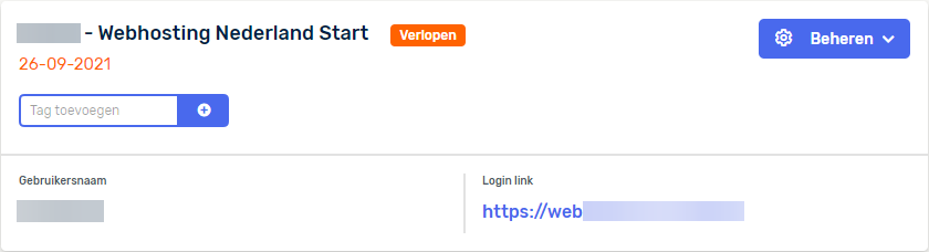 Als het hostingpakket minder dan 30 dagen geleden verlopen is, kunnen we deze nog achteraf verlengen.