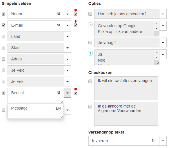 Tot slot is het ook belangrijk om de tekst binnen onderdelen van je website te vertalen. In dit voorbeeld doen we dat voor het contact formulier.