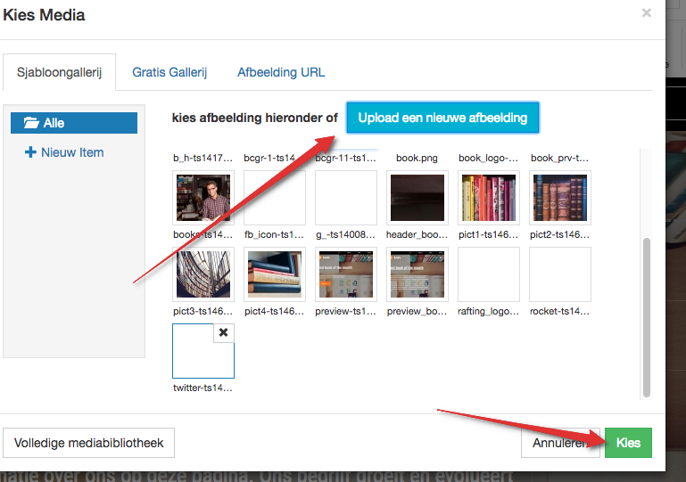 Klik op “Upload een nieuwe afbeelding”. Ga naar de afbeelding op je computer en klik “Openen”. Selecteer vervolgens uw afbeelding en klik onderaan op “Kies”.