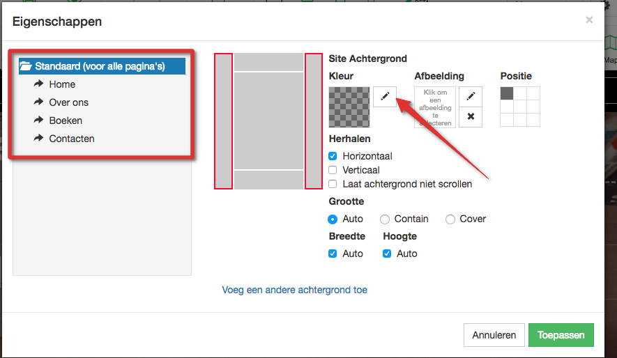 Het aanpassen van de achtergrondkleur van je website kun je doen aan de hand van de volgende stappen.