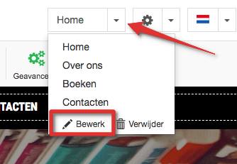 Klik op het grijze vakje met een potloodje. Deze is te vinden in het vak van je menu. Je krijgt een secundair menu te zien met de optie “Menu bewerken”. Klik hier op.