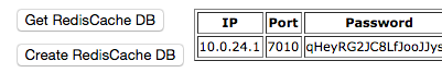 Zodra je hier op geklikt hebt, kom je op een overzicht pagina uit. Hier zie je de knop Create RedisCache DB staan. Hier klik je op. Vervolgens word er een nieuwe database aangemaakt en zie je deze in het lijstje staan. Je klikt vervolgens op deze database zodat die blauw word, waarna je klikt op Get RedisCache DB. Je krijgt nu login gegevens te zien, een IP adres en een poort. Deze gegevens slaan we vervolgens even op.