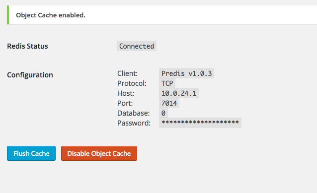 define('WP_REDIS_HOST', '10.0.24.1'); define('WP_REDIS_PASSWORD', 'jewachtwoord'); define('WP_REDIS_PORT', 'jepoort'); define('WP_REDIS_MAXTTL', 60 * 60 * 24 * 5); Boven deze regels:
