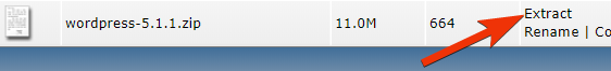 Druk op Extract, rechts van het WordPress bestand. Klik nogmaals op “Extract” om het bestand uit te pakken.