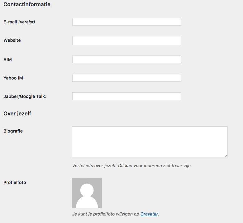 Daaronder vind je een aantal mogelijkheden om je persoonlijke gegevens in te vullen en een profielfoto in te stellen.