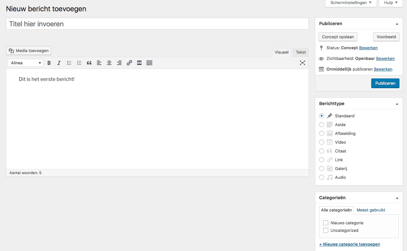 Hoe plaats ik een bericht op mijn Wordpress website?