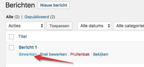 Om later de berichten nog te wijzigen kun je op de titel klikken of op het linkje “Bewerken”.